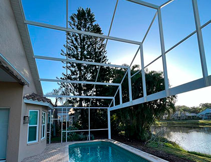 Over time, the pool cage itself or its screens may wear out, tear, or become damaged, necessitating repairs or renovations. Our team takes care of any issues involving the maintenance, replacement, or enhancement of your existing pool cage.